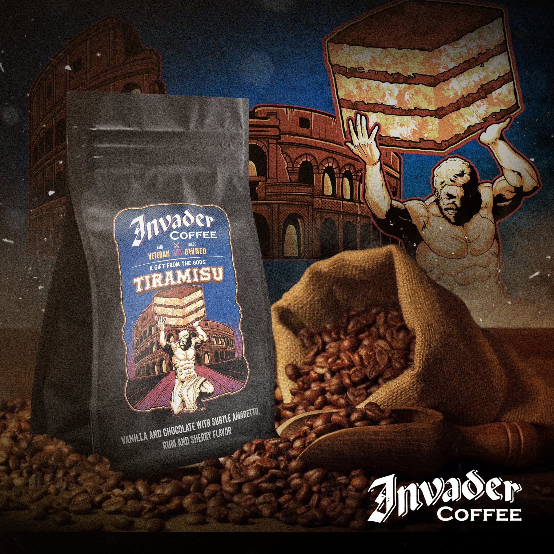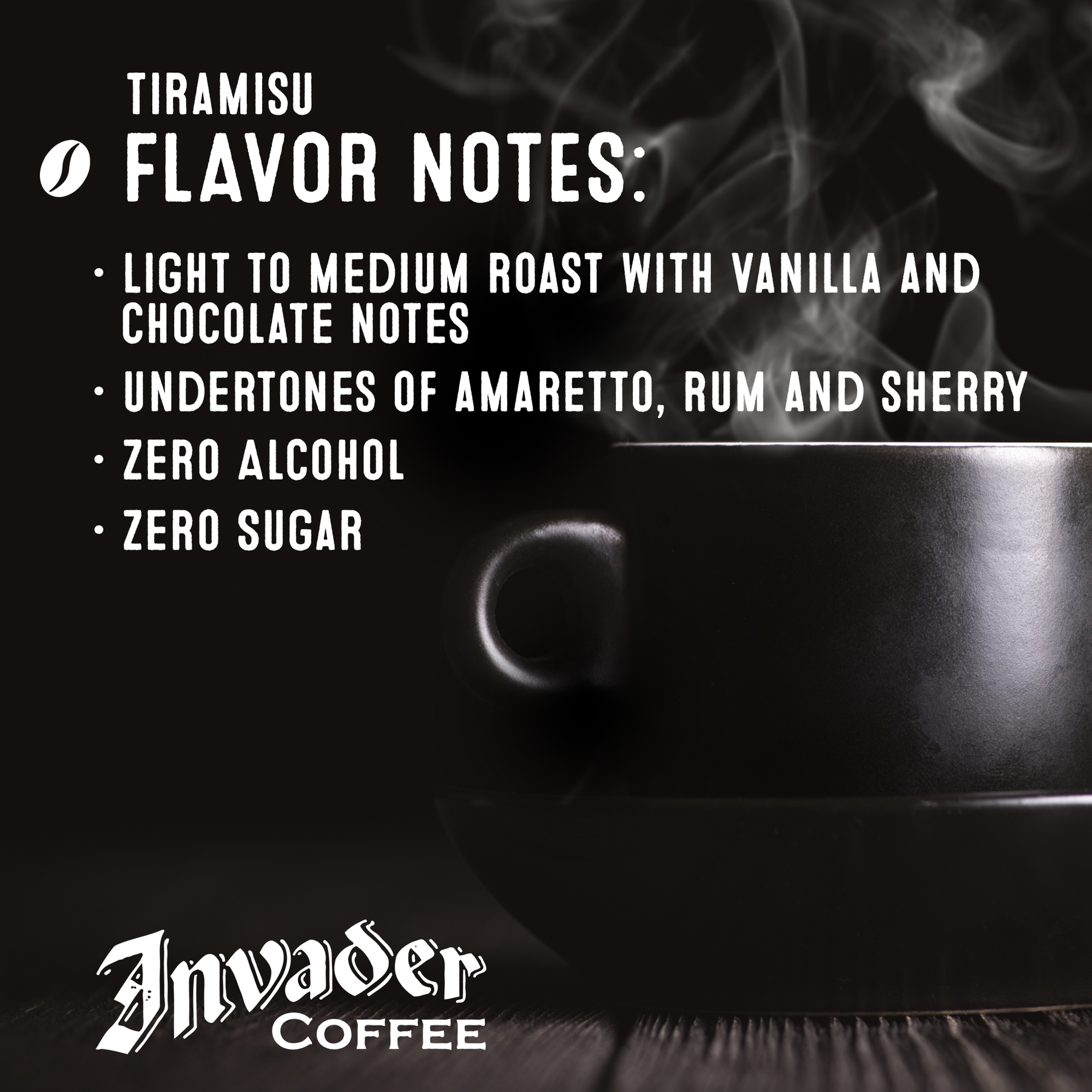 Elevate your coffee experience with Invader Coffee’s Tiramisu Blend. This air-roasted masterpiece captures the rich, decadent flavors of tiramisu with notes of velvety vanilla, smooth chocolate, and a perfect balance of amaretto, rum, and sherry. Every sip celebrates indulgence, turning your daily brew into something extraordinary. Let Invader Coffee awaken your senses and redefine your morning ritual.